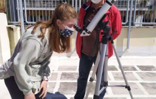 Σήμερα,12 Απριλίου 2022, συνεχίζοντας τις δράσεις στο πλαίσιο των Εργαστηρίων Δεξιοτήτων, οι μαθητές και οι μαθήτριες της ΣΤ τάξης είχαμε την τιμή και τη χαρά να φιλοξενήσουμε τους κ. Ζαχείλα Λουκά, κ. Ξενάκη Χρίστο και κ. Ταμβάκη Γεώργιο, υπεύθυνους της Εταιρείας Αστρονομίας και Διαστήματος Βόλου. Μαζί τους εξερευνήσαμε το ηλιακό μας σύστημα, μάθαμε τα «μυστικά» του επαγγέλματος του αστρονόμου (σπουδές, επαγγελματική σταδιοδρομία), περιπλανηθήκαμε στον όμορφο κόσμο του διαστήματος διαπιστώνοντας πόσο τυχεροί είμαστε που υπάρχουμε ως μοναδικά έμβια όντα του σύμπαντος και πόσο μεγάλη είναι η υποχρέωσή μας να φροντίζουμε τον πλανήτη μας ΓΗ. Το ονειρεμένο ταξίδι μας ολοκληρώθηκε παρατηρώντας με ειδικά τηλεσκόπια τον Ήλιο μας, το αστέρι που μας χαρίζει ζωή! Στο τέλος μας περίμενε μια μεγάλη έκπληξη! Πρόσφεραν σε όλους/όλες από δύο τεύχη του περιοδικού «Ουρανός» της Εταιρείας Αστρονομίας, το οποίο έχει βραβευτεί από την Ακαδημία Αθηνών.