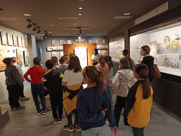 Θαύμασαν όλα τα εκθέματα και στη συνέχεια γνώρισαν τα στάδια από τα οποία περνά η δημιουργία μιας βυζαντινής εικόνας!