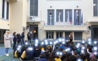 Με λόγια απλά και κατανοητά μίλησε στα παιδιά για το τσουνάμι, την κατολίσθηση και αναφέρθηκε στη σπουδαιότητα της ετοιμότητας της οικογένειας σε συνθήκες σεισμικών φαινομένων.