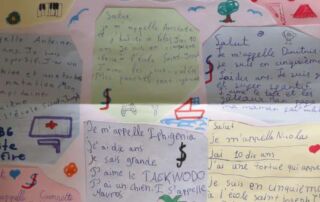 Με πρωτοβουλία των εκπαιδευτικών γαλλικής του Λεόντειου Δημοτικού Σχολείου Νέας Σμύρνης και αυτών του Σχολείου μας, οι μαθητές των Γ, Δ & E τάξεων ανταλλάσσουν σε μηνιαία βάση αλληλογραφία στα γαλλικά προκειμένου να γνωριστούν μεταξύ τους και να εξασκήσουν τη γλώσσα. Η συγκεκριμένη δράση ενθουσίασε τα παιδιά που “έβγαλαν” όλη τους τη δημιουργικότητα για να την επικοινωνήσουν στους νέους φίλους τους.