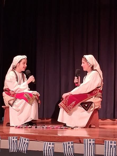 Οι μαθητές και οι μαθήτριες καθήλωσαν μικρούς και μεγάλους με την ωριμότητα τους δραματοποιώντας τους “Ελεύθερους Πολιορκημένους” καθώς και αποσπάσματα από παιδικά λογοτεχνικά βιβλία (Το παιδί με τη φουστανέλα του Δ. Λεϊμονή- Οι αγωνίστριες του 1821 των Ε.Νταβλαμάνου και Αθ. Ελευθερούλη – 11 ημέρες του Απρίλη 1826 της Λ.Λαμπρέλλη- 22 Ιανουαρίου, Μεσολόγγι του Λόρδου Βύρωνα).
