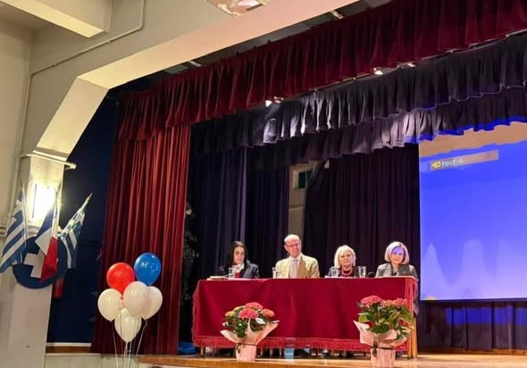 Χαιρετισμό απηύθηναν η Άρτεμις Κουτσούκου, Πρόεδρος του Συλλόγου Αποφοίτων της Ελληνογαλλικής Σχολής Βόλου και του Ελληνογαλλικού Συνδέσμου Βόλου και η Διευθύντρια του Σχολείου μας.