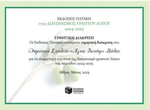 Μαθητές και μαθήτριες του Σχολείου μας συμμετείχαν στον 17ο Διαγωνισμό Γραπτού Λόγου από τις Εκδόσεις Πατάκη.
