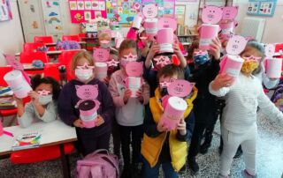 Διαβάσαμε στην τάξη το βιβλίο «Μπορώ και χωρίς αυτά» από τις εκδόσεις Μίνωας και μιλήσαμε για τη σημασία του περιττού και του απαραίτητου, για την πλεονεξία και την αξία του να «μοιράζεσαι». Ακούσαμε τον μύθο του Αισώπου «Ο τζίτζικας και ο μέρμηγκας» και το παραμύθι «Αποταμίευση» της Λιλιπούπολης. Παίξαμε παιχνίδια με χάρτινα κέρματα, τραγουδήσαμε το τραγούδι της Αποταμίευσης και στο τέλος φτιάξαμε γουρουνάκια καθώς και τον δικό μας γουρουνάκι – κουμπαρά για να αποταμιεύουμε το χαρτζιλίκι μας.