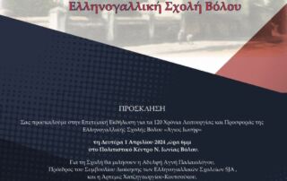 Σας προσκαλούμε στην Επετειακή Εκδήλωση για τα 120 Χρόνια Λειτουργίας και Προσφοράς της Ελληνογαλλικής Σχολής Βόλου «Άγιος Ιωσήφ» τη Δευτέρα ...
