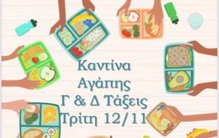 Την Τρίτη 12 Νοεμβρίου και την Τετάρτη 13 πραγματοποιήθηκε στο σχολείο μας η πρώτη καντίνα αγάπης για το τρέχον σχολικό έτος, από τις τάξεις Γ’ και Δ’. Γονείς, μαθητές και δάσκαλοι με πολλή όρεξη, φαντασία αλλά κυρίως αγάπη για τον άνθρωπο ετοίμασαν αλμυρές και γλυκιές λιχουδιές που διατέθηκαν σε όλη [...]