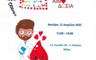 Οι Αδελφές, οι Εκπαιδευτικοί και ο Σύλλογος Γονέων και Κηδεμόνων του σχολείου μας σας προσκαλούν στην εθελοντική αιμοδοσία που θα γίνει σε κινητή μονάδα του Αχιλλοπούλειου Νοσοκομείου Βόλου στο χώρο του Σχολείου μας.